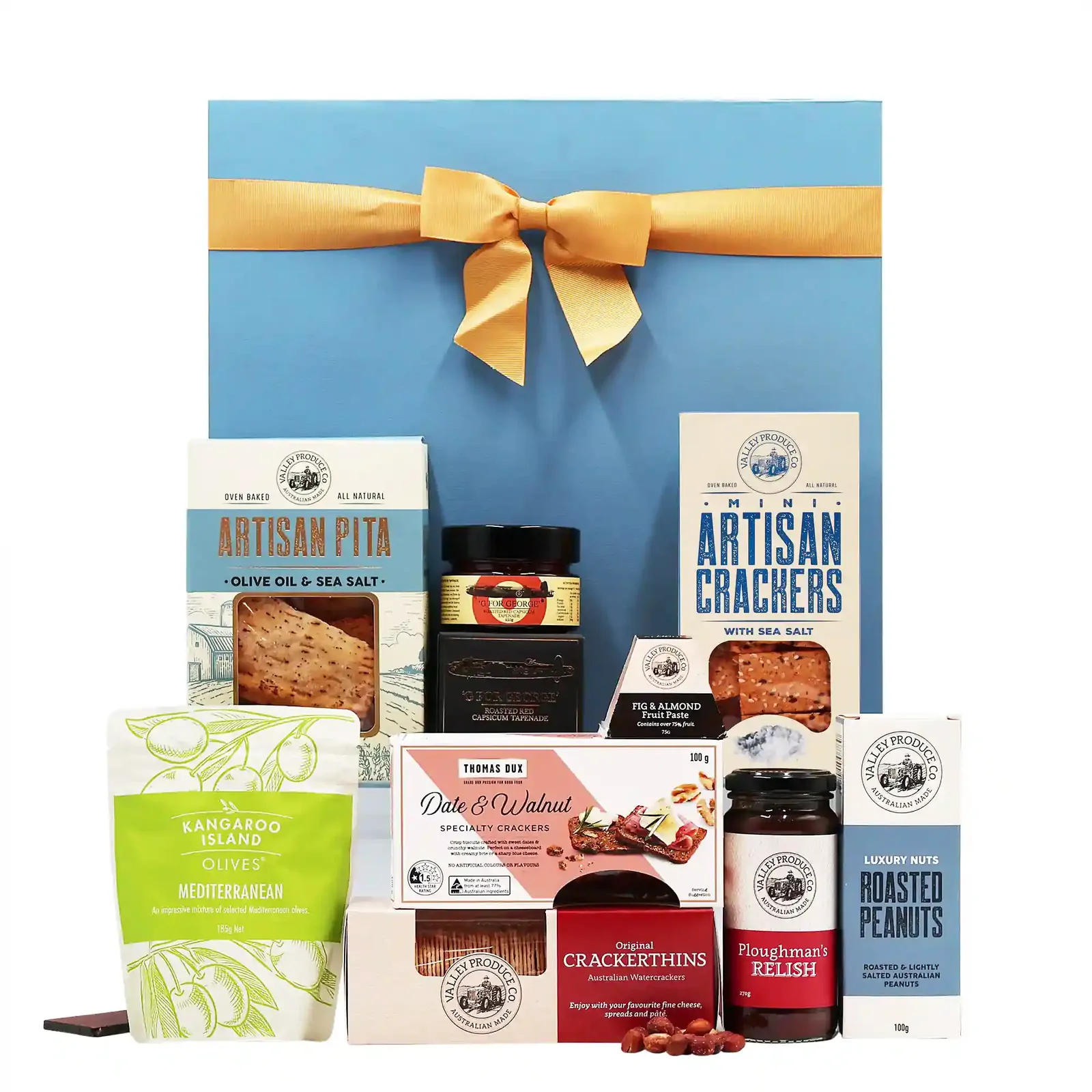 To add a burst of fruity sweetness, the hamper includes the Valley Produce Co. Fig & Almond Fruit Pyramid. This beautifully presented fruit paste combines luscious figs with crunchy almonds, creating a rich, caramelised accompaniment that enhances the depth of flavour in cheeses like manchego, gorgonzola, or goat’s cheese.