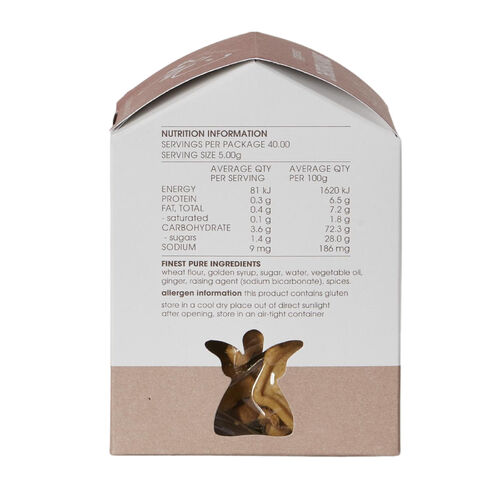 Wheat flour, sugar, water, golden syrup, vegetable oil, ginger, spices, raising agent (sodium bicarbonate), soy protein.