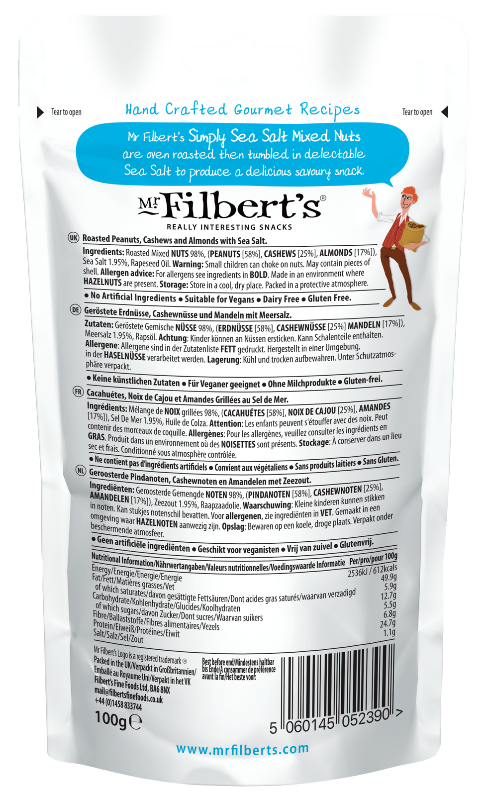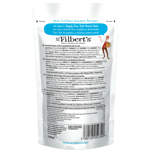 | Ingredients | Roasted MixedÊNUTSÊ98%, (PEANUTSÊ[58%],ÊCASHEWSÊ[25%],ÊALMONDSÊ[17%]), Sea Salt 1.95%, Rapeseed Oil. |